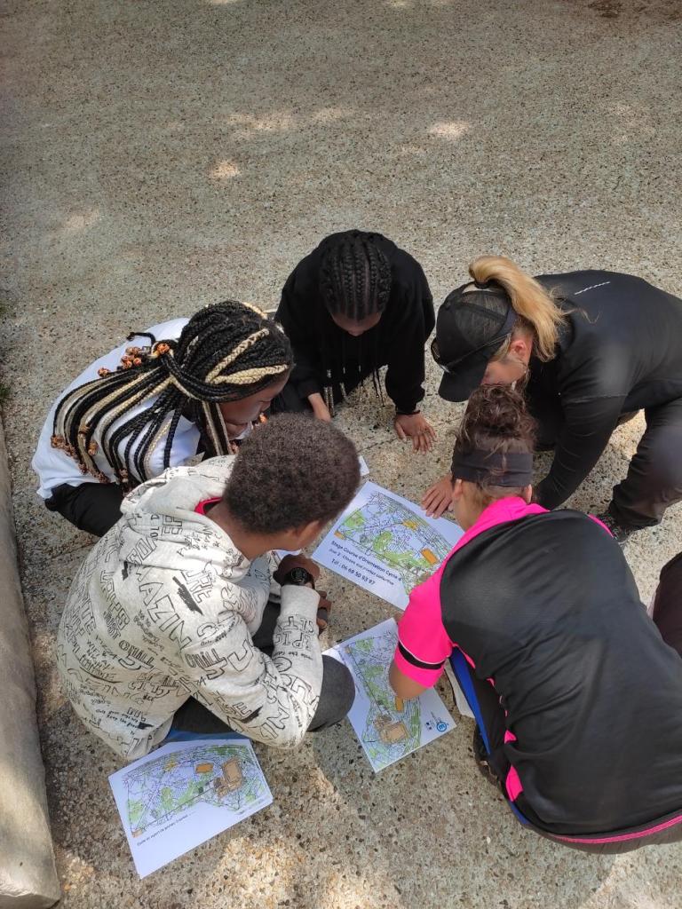 Les choses « sérieuses », si l’on peut dire, commencent à l’étape suivante avec le lancement de la course à proprement parler. Sur les cartes distribuées aux élèves figurent désormais de vrais « spots », c’est-à-dire, sur le terrain, des « balises ». Chacun doit se débrouiller pour les trouver tout seul…et en temps limité! Certains ont hâte de se lancer avec vrai instinct de compétiteur, d’autres sont plus inquiets à l’idée de se retrouver seuls dans ce grand bois…