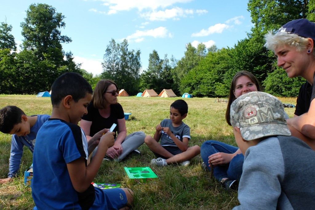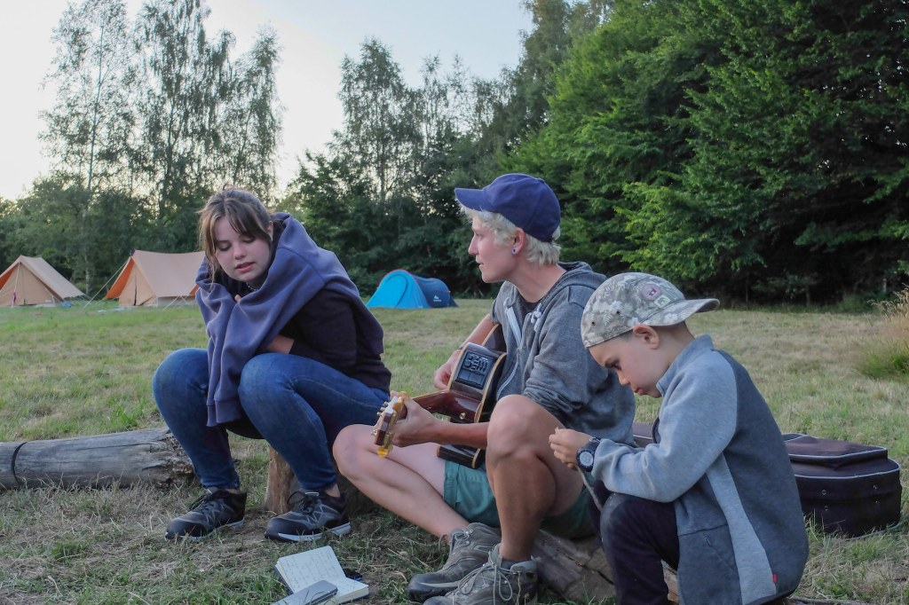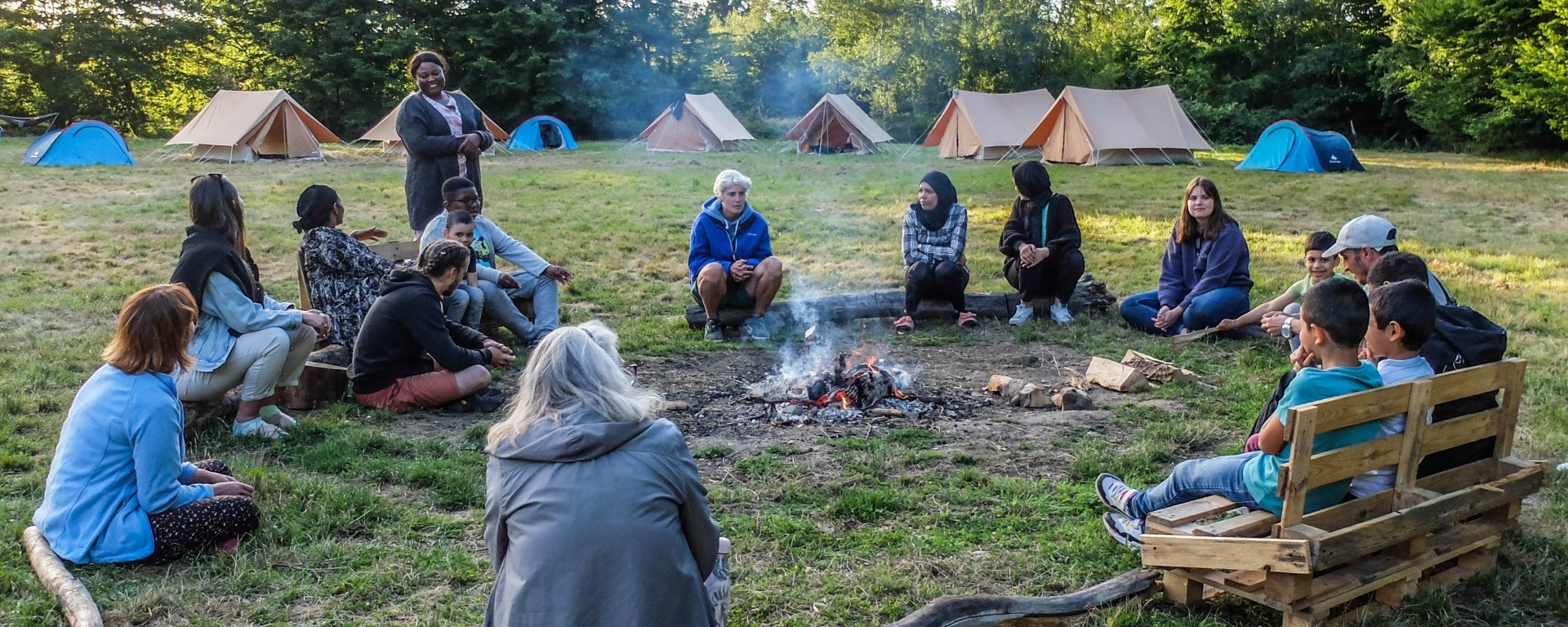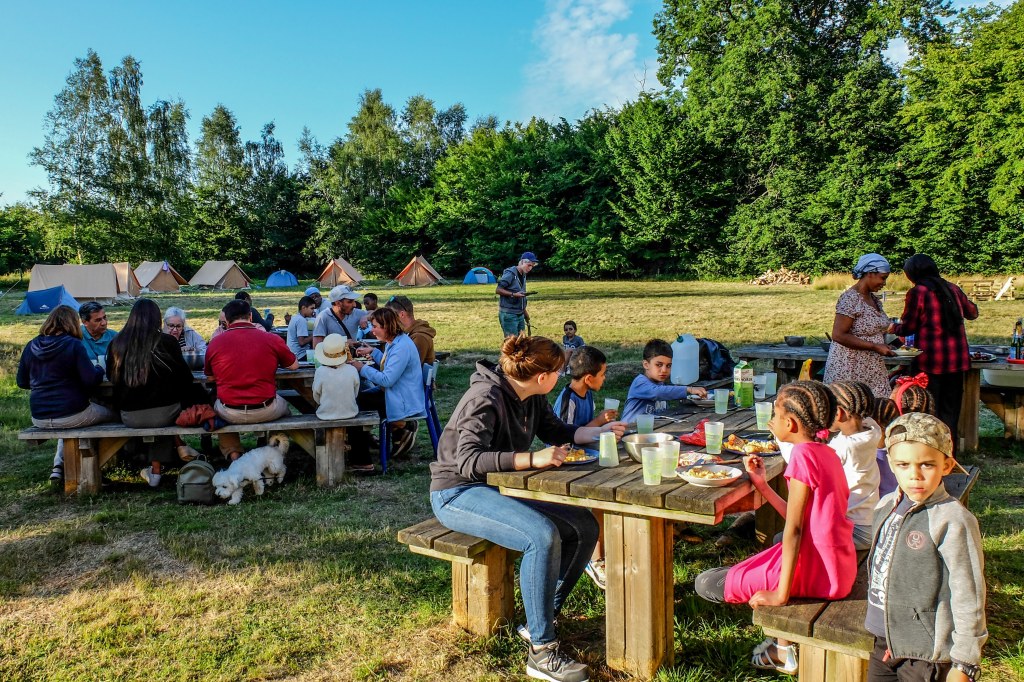 Après une installation des familles dans leurs tentes, nous avons partagé un repas autour du feu de bois allumé par Les camps sur la comète. Les enfants ont échangé en langue française avec des marshmallows grillés plein la bouche. Nous avons lu des contes autour du feu et partager des rires et des sourires!