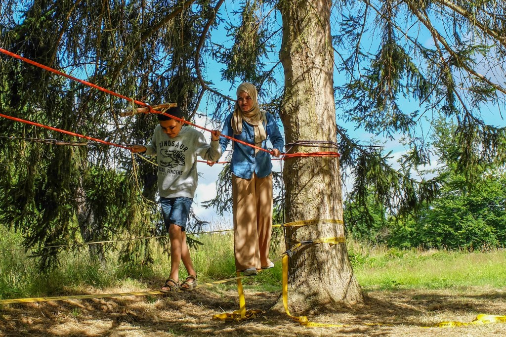 La fin d’après-midi a été ponctué de jeux de plein-air (parcours dans les arbres, moly, balançoire, etc…) et nos sens étaient aiguisés par la préparation du couscous du soir (la recette des mamans est disponible en podcast sur le lien suivant à partir de 48 minutes https://radio-rtc.fr/emission/radio-boieldieu-apres-midi-1/ ). Nous avons ensuite partagé ce plat tous ensemble avant d’entonner quelques chansons françaises autour du feu accompagnées à la guitare par une animatrice de l’association. Ce fut un petit moment festif pour célébrer la réussite aux examens du DELF de nos parents qui ont suivi les ateliers!