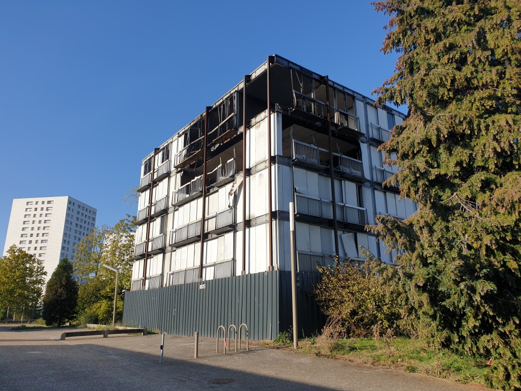 Datant de 1970, ces deux immeubles étaient destinés à la destruction à cause de leurs défauts de construction. Malgré qu’ils étaient vides, on peut supposer qu’il y ait eu des squatteurs.