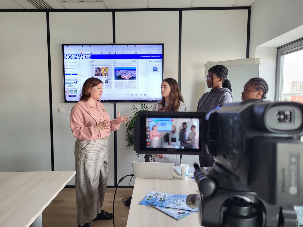 Tout d’abord nous avons rencontré Céline Bruet qui est cheffe d’édition de la rédaction « Rouen Métropole » de Paris Normandie. Elle nous a accueillis et s’est chargée de nous faire découvrir le journal et le métier de journaliste.