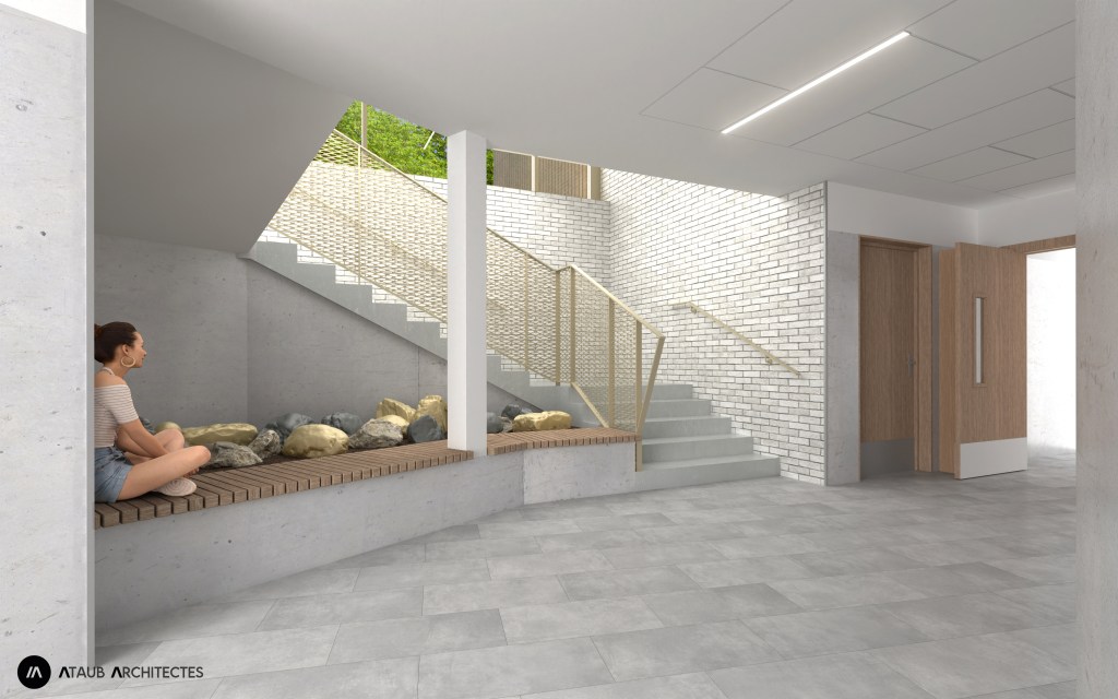 Le nouveau bâtiment sera accessible par un escalier :