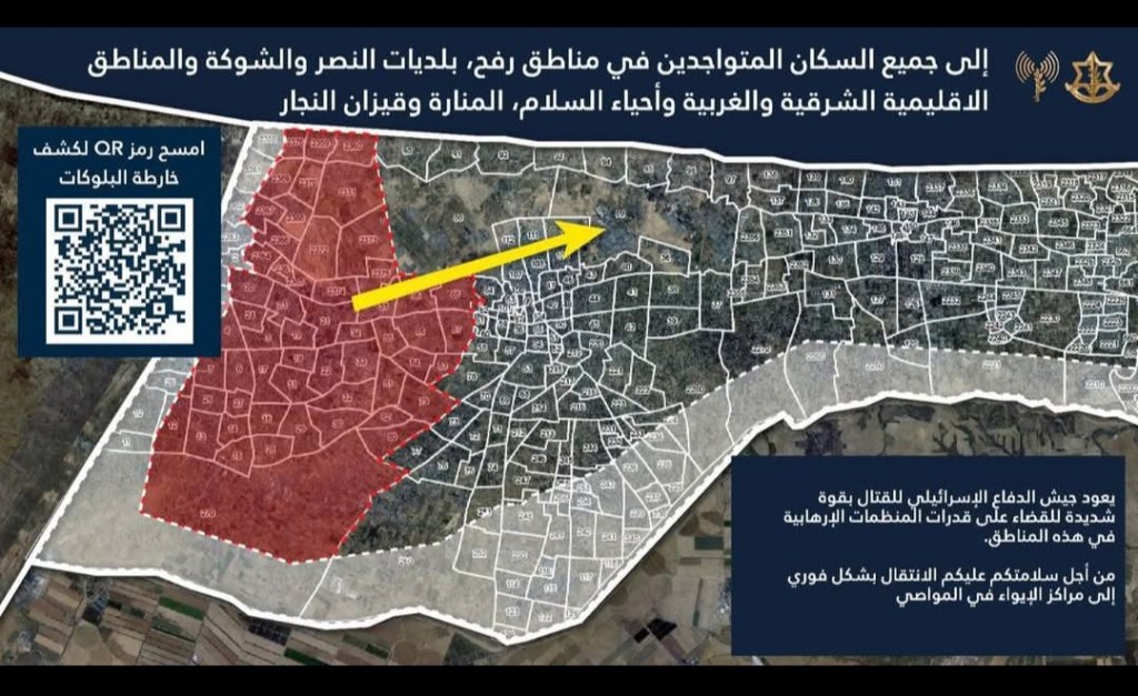 Tracts largués par les avions israéliens annonçant aux habitants de Rafah que la zone va être bombardée et qu’ils doivent partir pour le sud de Gaza.