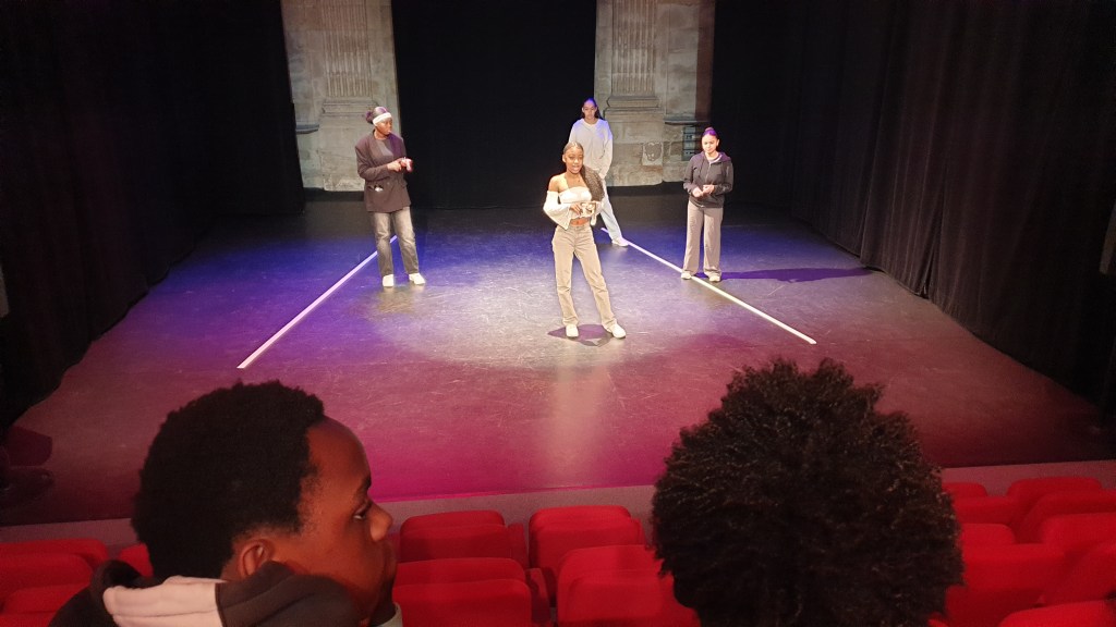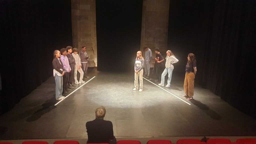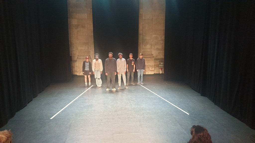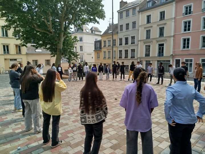 Ce mardi matin, les élèves descendent en bus avec Mme Jereczek, Mme Thomas-Noël et Sarah jusqu’au petit théâtre de la place de la Rougemare, non loin du lycée Corneille. une fois les élèves réunis. Les élèves commencent par faire une répétition pour voir dans quel ordre ils allaient passer et comment ils devaient se placer sur scène.