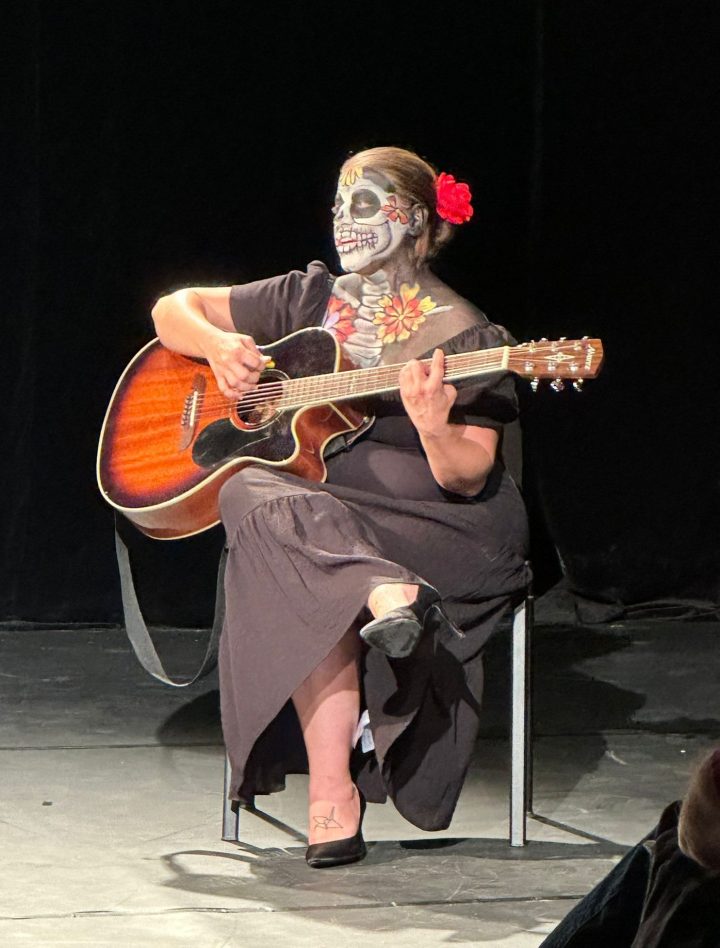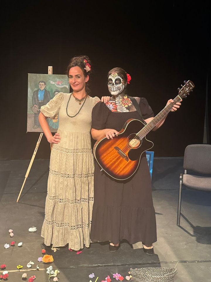 Elodie Goudé et Salomée Robard étaient deux pour donner vie à cette correspondance, une pour incarner Frida Kahlo et une qui nous narrait son histoire en s’accompagnant à la guitare. Diego Rivera, son mari, le célèbre peintre muraliste, n’était pas présent sur scène et pourtant il était dans toutes les lettres ou presque. Frida l’a rencontré l’année de ses 15 ans alors qu’il en avait 35. Saviez-vous que son « tendre » comme elle aimait l’appeler, l’aurait trompée plus de 40 fois? Dont une fois avec sa sœur préférée ? On raconte même que ce cher et tendre Diego lui aurait dit, je cite : « La fidélité est un concept bourgeois et obsolète. » Frida ne supporte plus les infidélités de Rivera et ils divorcent en 1938… mais se remarient en 1940 ! Avec la promesse, exigée par Frida, de ne plus jamais la tromper.